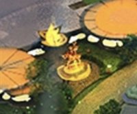 I see a character on a horse in front of the building....or I guess that could be flames around the horse.